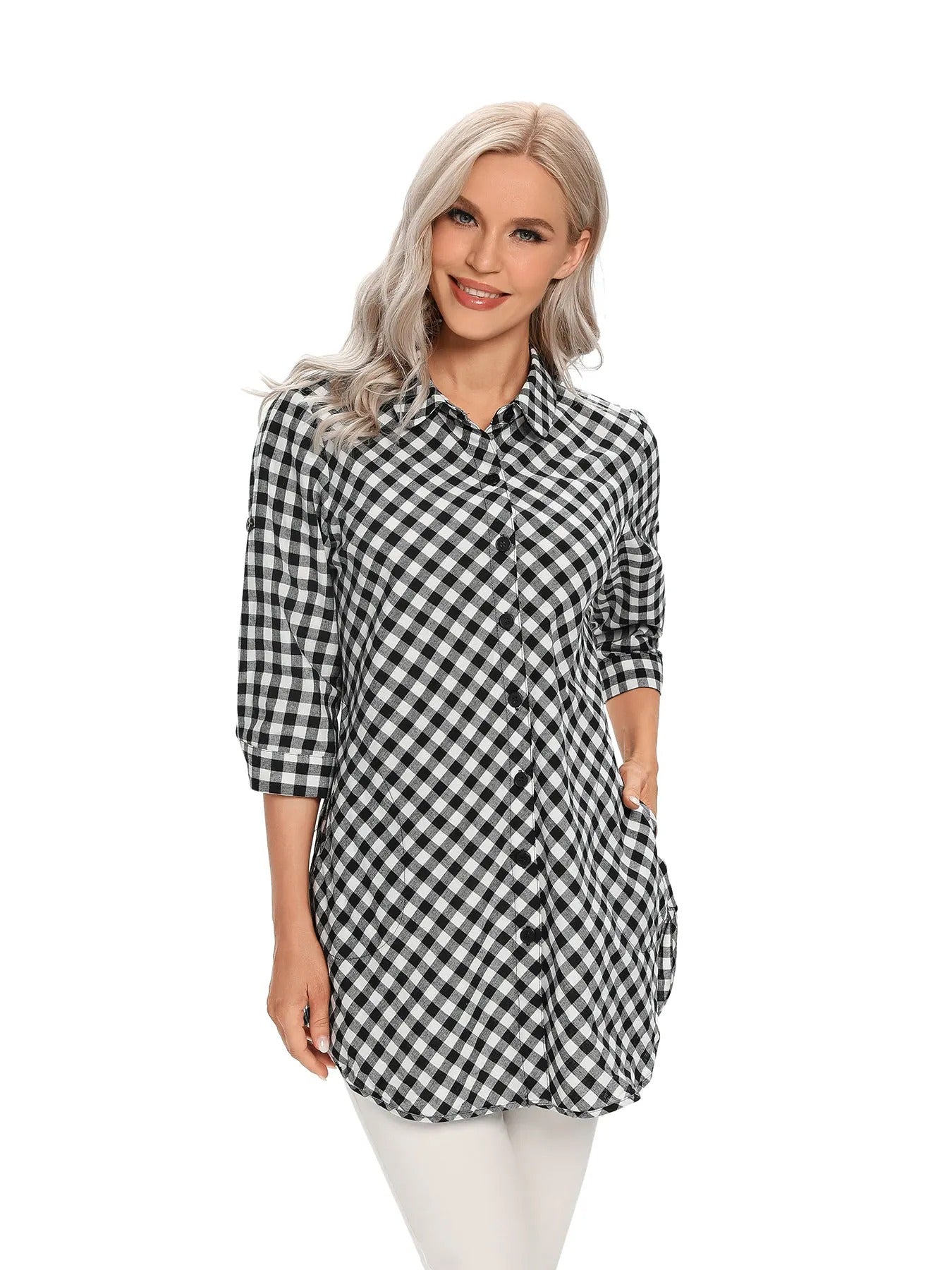 Die Clarissa Damenbluse überzeugt mit ihrem klassischen Karomuster und einer zeitlosen, femininen Ausstrahlung. Der Hemdkragen und die durchgehende Knopfleiste verleihen der Bluse einen gepflegten Look, der sich sowohl für den Alltag als auch für das Büro eignet.